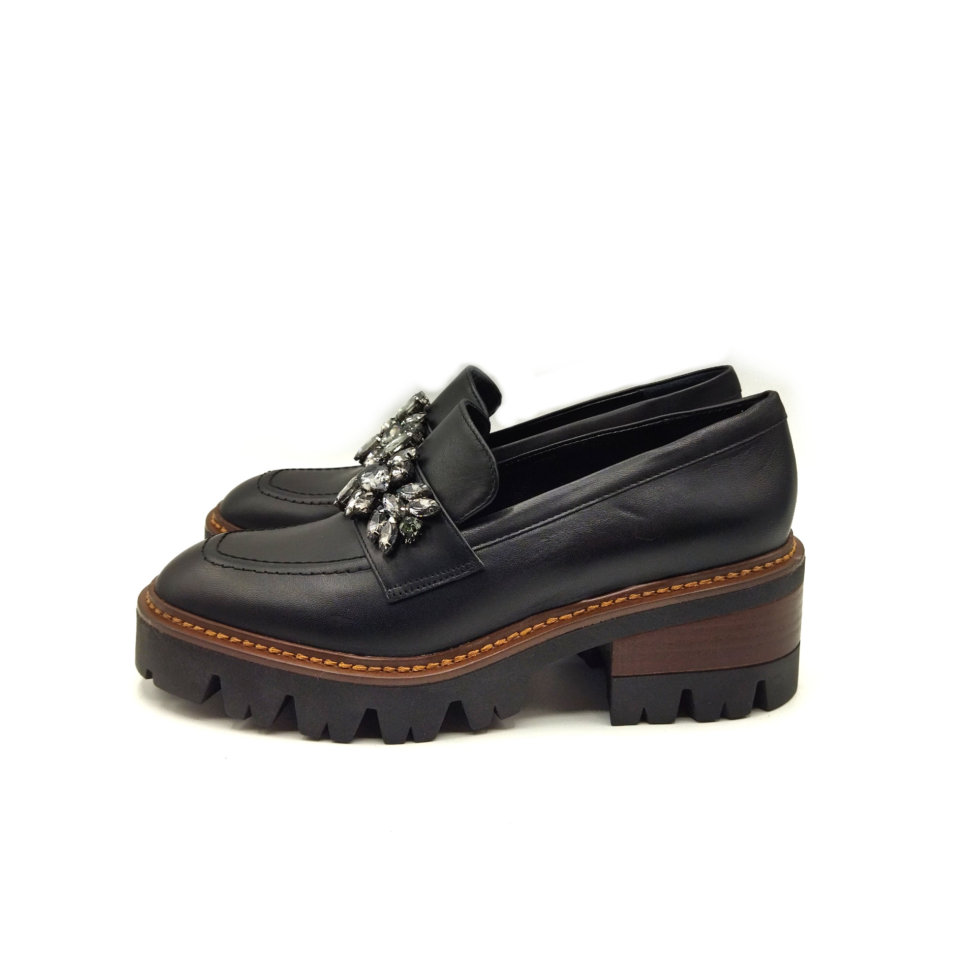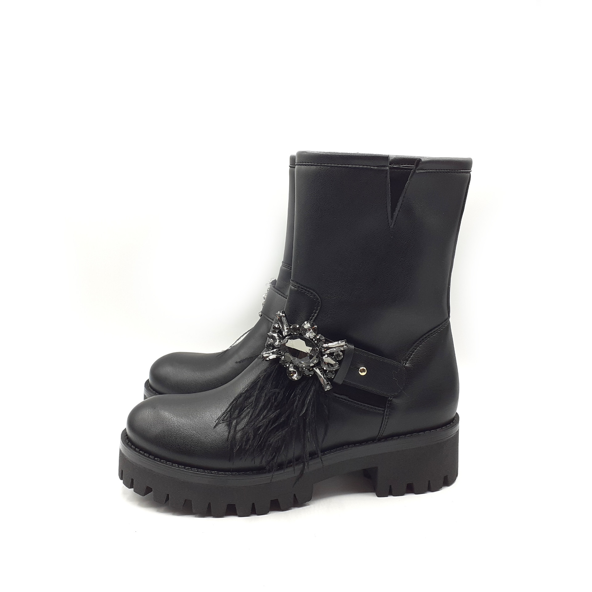 Loafers find a new impulse with jewel accessories, tassels and platforms; leather boots become a must for determined and confident woman, thanks to contrast inserts; ankle boots stand out with soft texture.